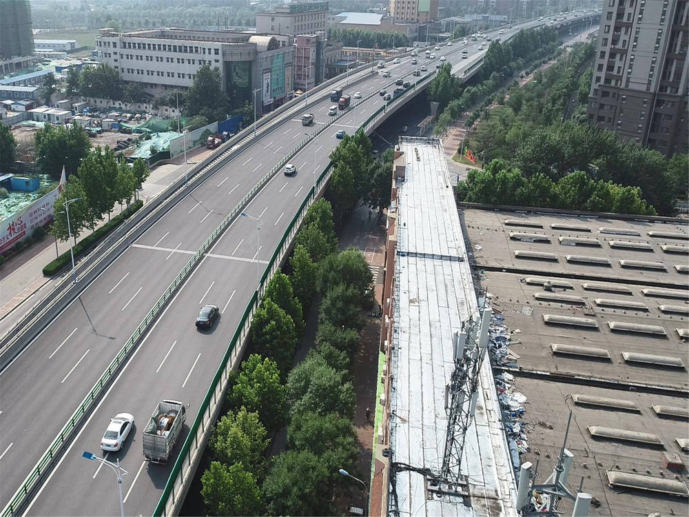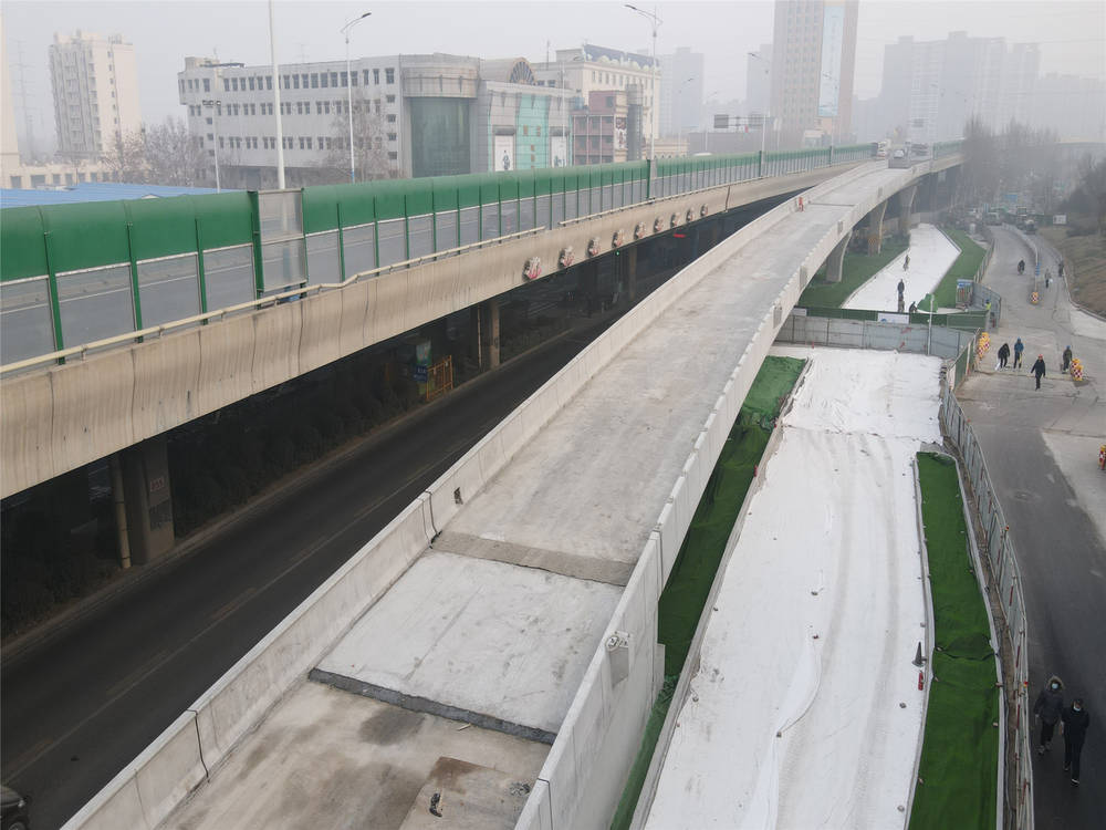 ? 二環(huán)東高架-荷花路匝道位于二環(huán)東路快速路北端,東側(cè)下匝道(南向北)于2008年建成實(shí)施,但西側(cè)上匝道(北向南)受征地拆遷等因素一直未能同步建成。三分公司承建工程即為西側(cè)上匝道,包含235米匝道橋建設(shè)和670米地面道路順接。