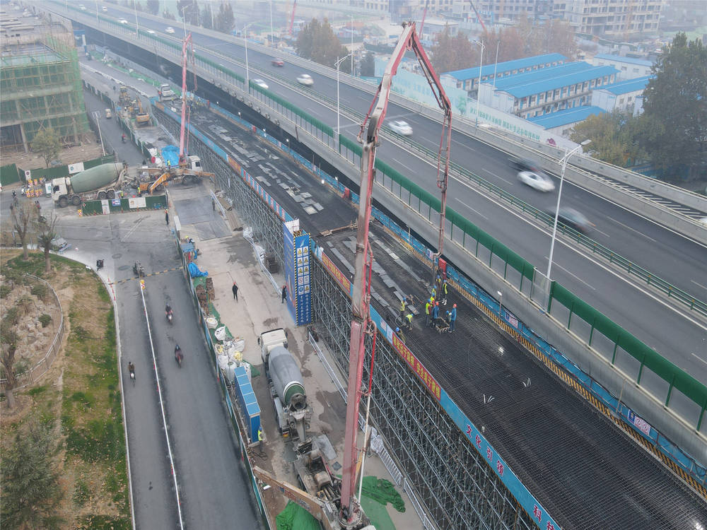 ? 自開工建設(shè)以來(lái),項(xiàng)目部精心組織、科學(xué)部署,在上級(jí)單位及集團(tuán)公司的大力支持和幫助下,全力克服工期緊張、拆遷、重污染天氣等制約性因素,并直面錯(cuò)綜復(fù)雜的地下管線和繁重的交通壓力,在確保文明施工前提下,緊抓節(jié)點(diǎn)、倒排工期,項(xiàng)目全體成員集中奮戰(zhàn)、堅(jiān)守一線,高質(zhì)高效推進(jìn)施工建設(shè)任務(wù),確保按時(shí)完成各項(xiàng)節(jié)點(diǎn)目標(biāo)。??