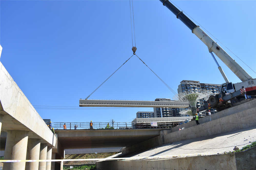 ? 自集團(tuán)公司“大干60天”活動(dòng)開(kāi)展以來(lái),四分公司及項(xiàng)目部全員緊盯“搶進(jìn)度、抓質(zhì)量、保安全、促文明、提效益”的目標(biāo),主動(dòng)擔(dān)當(dāng)作為,積極開(kāi)展各項(xiàng)施工管理工作。在材料分公司的大力支持與配合下,經(jīng)過(guò)緊張有序的部署安排, 6月1日飛躍大道項(xiàng)目順利完成韓倉(cāng)河橋橋板吊裝,為橋面構(gòu)造的全面施工奠定了基礎(chǔ)。